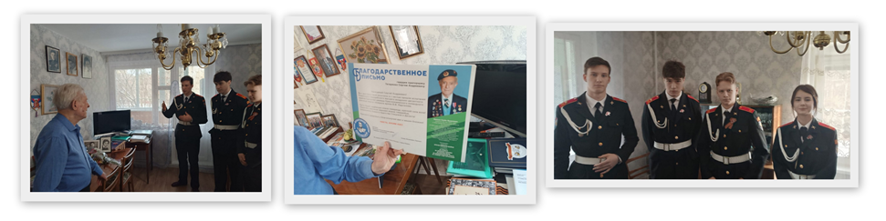 21 февраля кадеты 10 «К» с кадетским воспитателем Гончаровым В.М. поздравили ветерана Великой Отечественной войны Люлько Семена Яковлевича с Днем Защитника Отечества. Нашу школу и Семена Яковлевича связывает многолетняя дружба. И несмотря на свой почтенный возраст (1926 г.р.), Семен Яковлевич и сегодня частый гость на предприятиях, учреждениях и школах района. Его рассказы о войне, о подвиге советского народа воспитывают в нас чувство гордости и патриотизма, любви к нашей великой Родине.