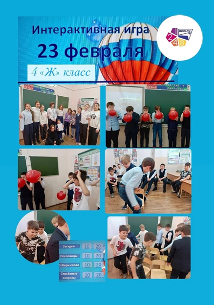В начальных классах учащиеся создавали открытки с теплыми пожеланиями и принимали участие в различных играх. Например, в 4 «Ж» классе прошла интерактивная игра "А, ну-ка, мальчики!", где на игровом поле были представлены вопросы разной сложности, а игровую программу продолжили увлекательные конкурсы.