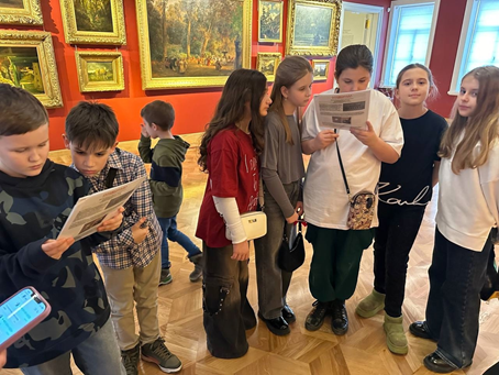 А команда 4 «А» класса в рамках участия в олимпиаде «Музеи. Парки. Усадьбы» продолжает посещать музеи, выставки, получать знания в области культуры и творчества, науки и истории. В центре Москвы на Поварской улице участники посетили мемориальную музей-квартиру Е.Ф. Гнесиной - основателя и руководителя Гнесинских училищ. В музее полностью сохранена обстановка квартиры. Ребята услышали исполнение музыкальных произведений на рояле, расположенном в кабинете Е.Ф. Гнесиной. По первым нотам они узнали знакомые музыкальные композиции великих композиторов.